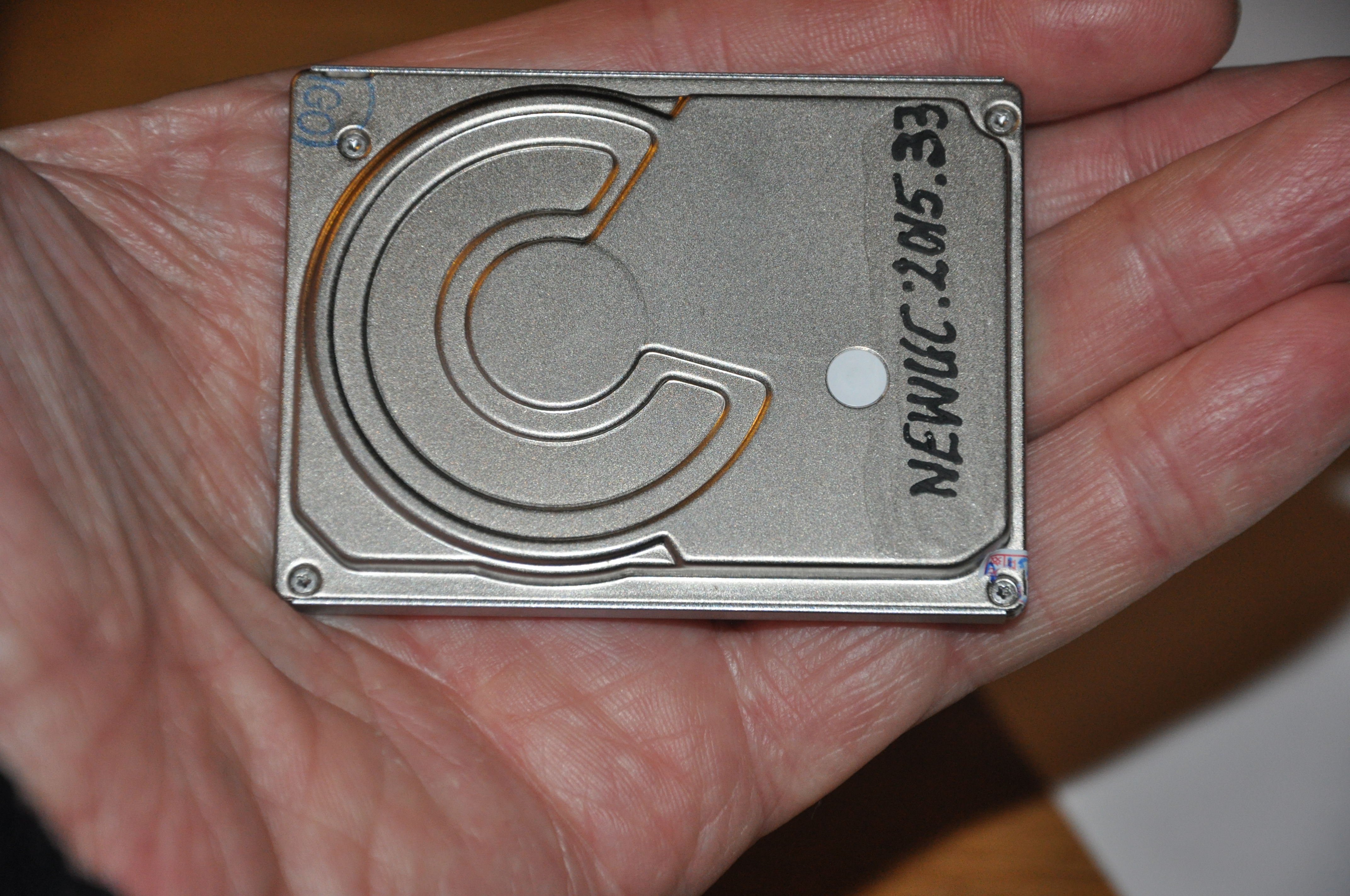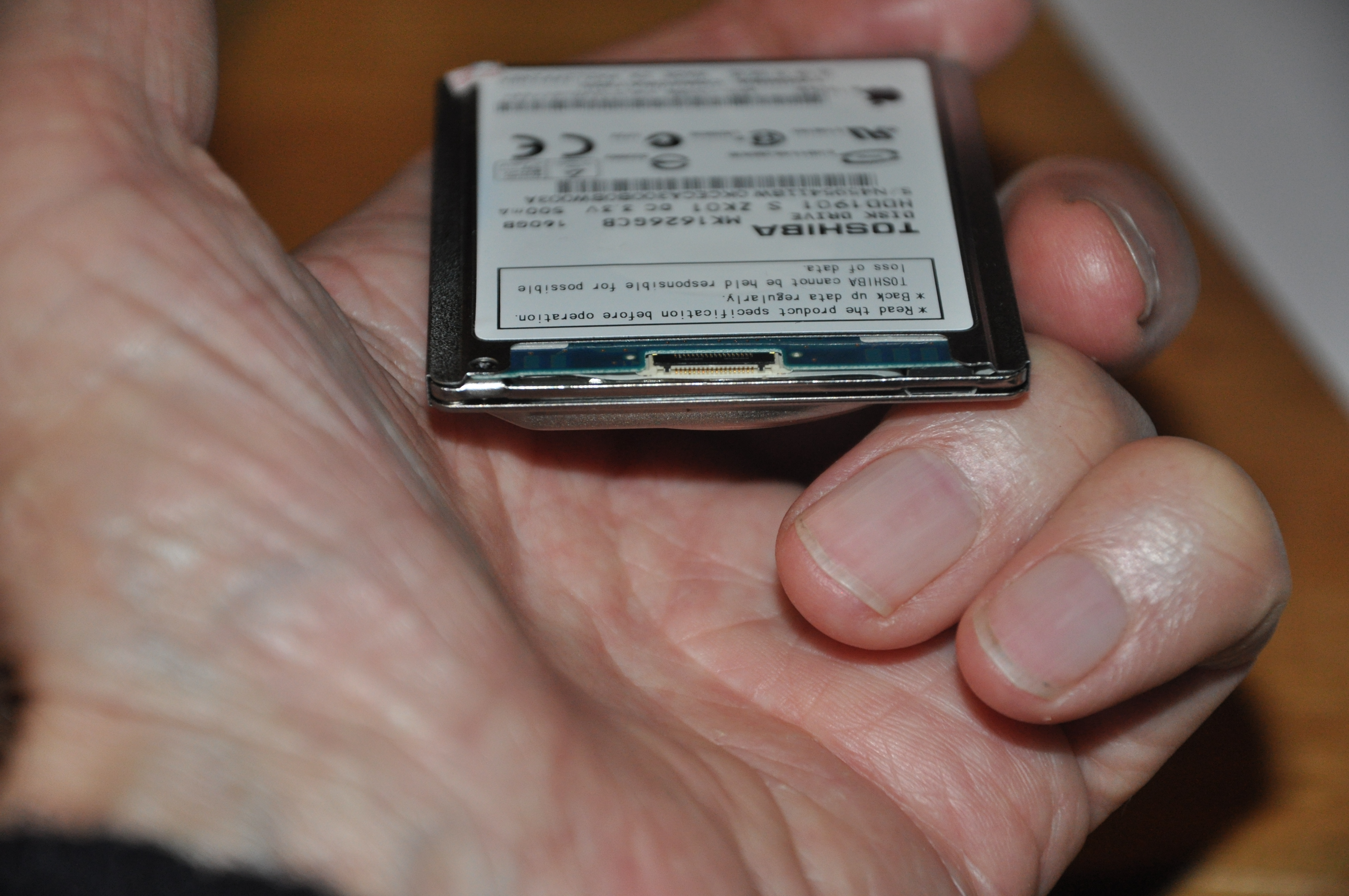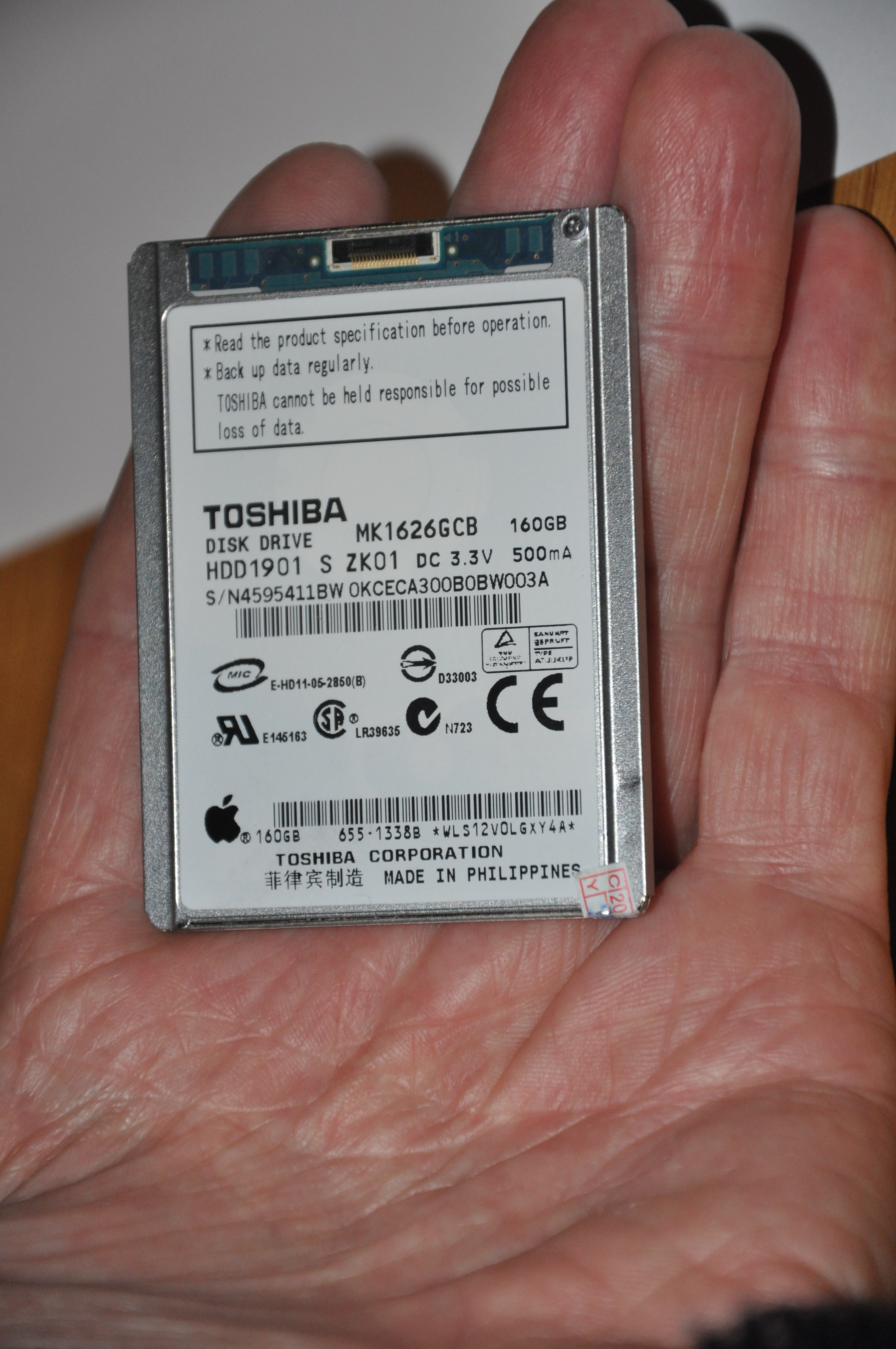 It stored 160GByte, weighed 56gram, making it 0.00035gram/MByte the least in the collection.