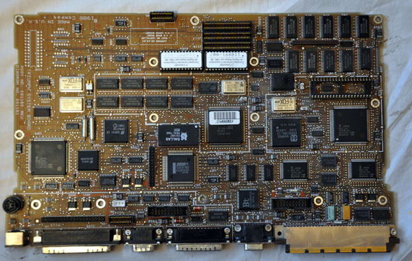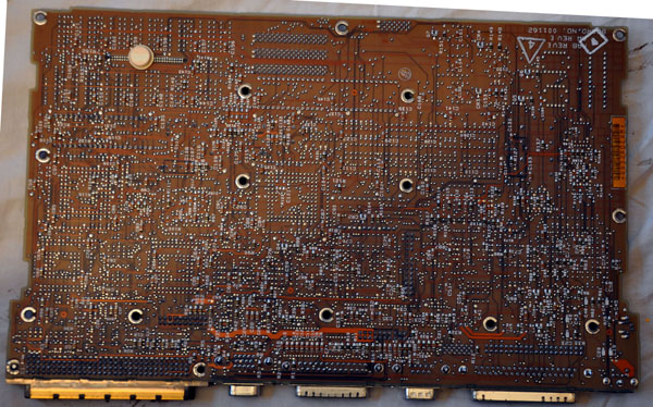 We start with the mother board. Just right of centre is a 4x17 68 lead PLCC (Plastic leaded