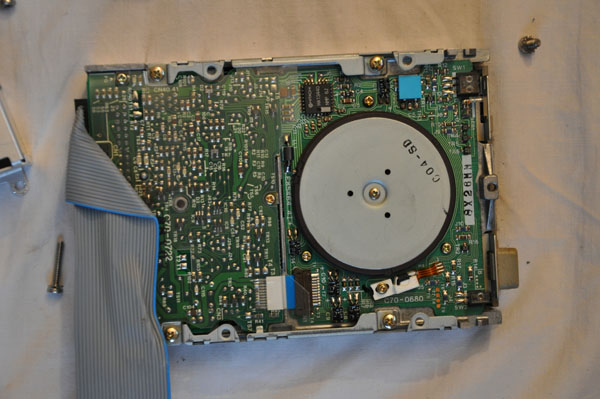 Top of the 40MByte hard disk drive. It was mounted so as to withstand rough