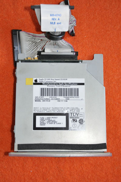 ![]() The first thing to remove was the Apple CD 24X Max Speed CD-ROM. MANUFACTURED OCTOBER 1998.   |