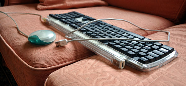 The keyboard connected to one of the two USB ports and the keyboard had two more USB sockets. The mouse is connected to one of them.   |