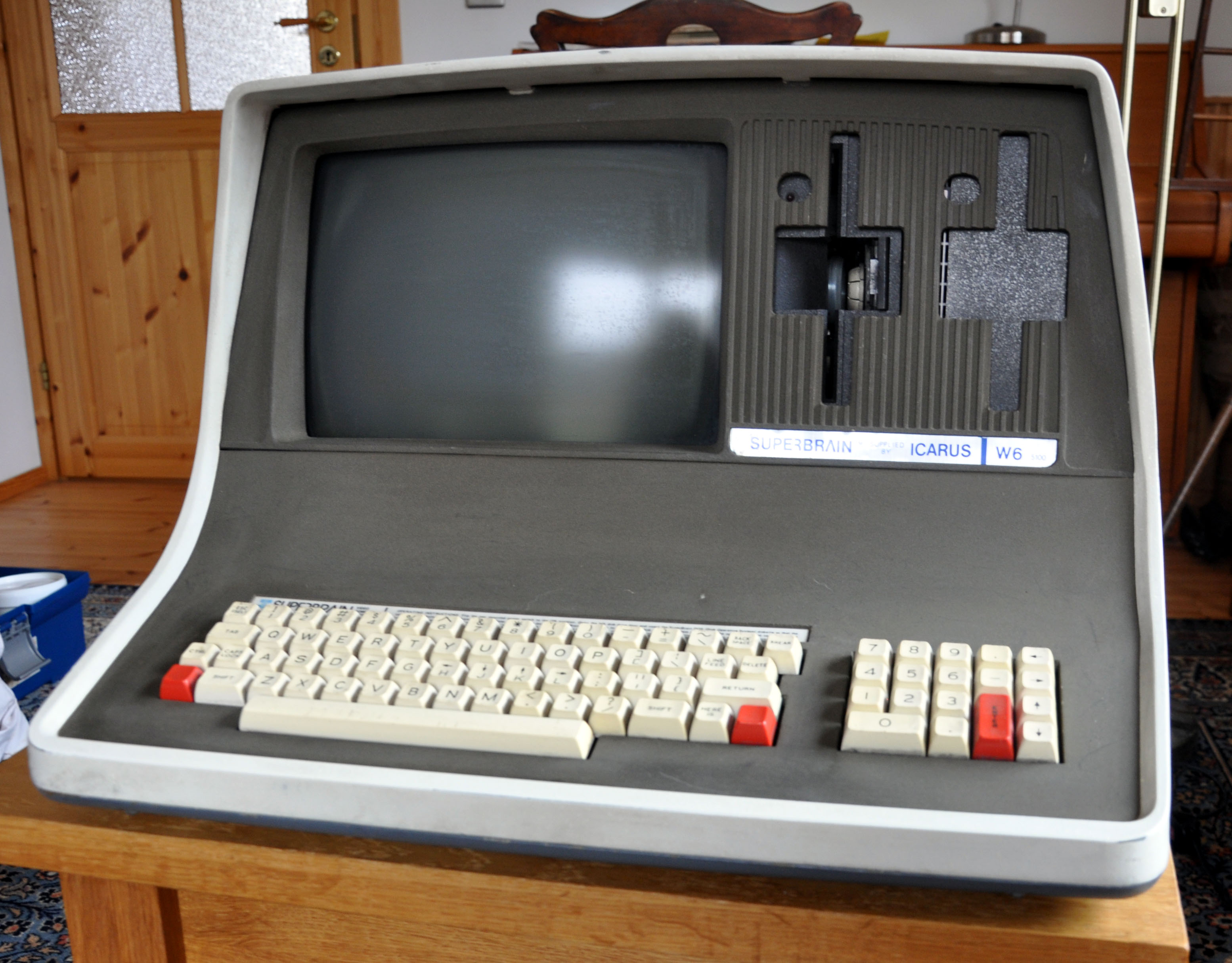 The SUPERBRAIN was a single unit with keyboad, monitor, floppy disk and hard disk