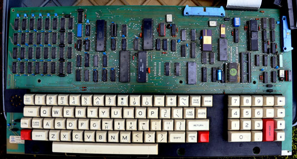 board includes the keyboard and numeric keypad. Note the white metal plate to the left of the